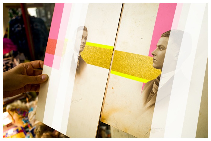 I have intervened in these photographs by digitally layering color stripes that partially obscure the original portraits. This gesture disrupts the immediacy of the image, inviting the viewer to look beyond surface recognition. The work operates as a temporal interface—recycling fragments of the past while embedding them in a contemporary visual language. In doing so, it opens multiple layers of interpretation, where personal memory, cultural codes, and social histories converge and collide