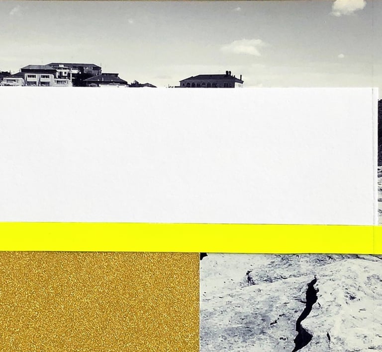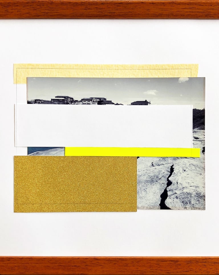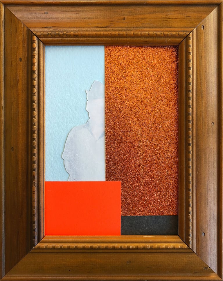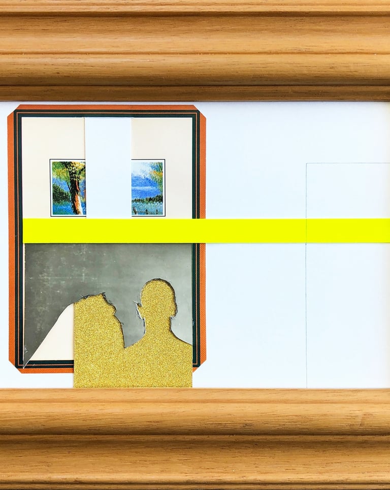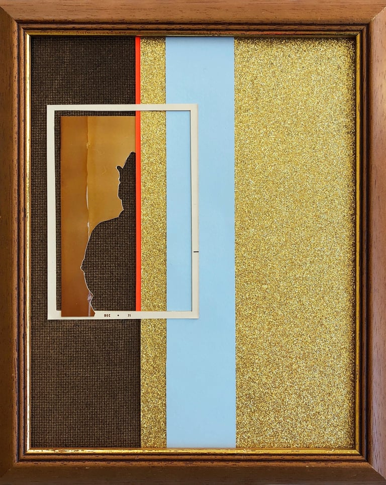 2019 | Found photography, ephemera, hand-cut paper, glass, acrylic paint, wooden.
