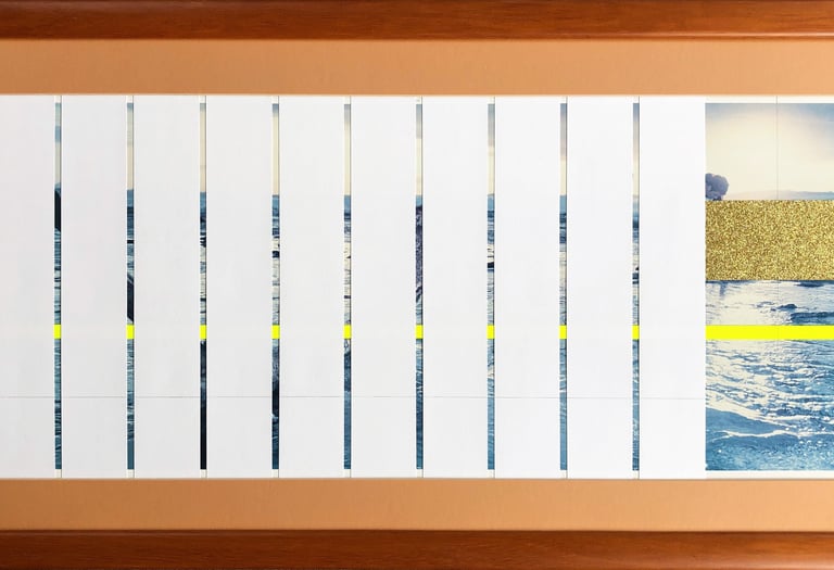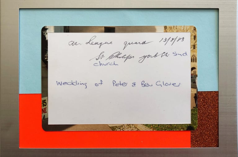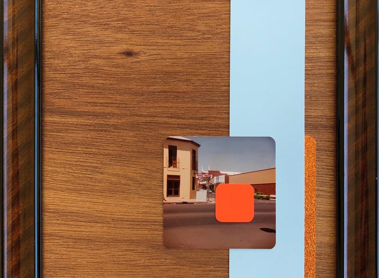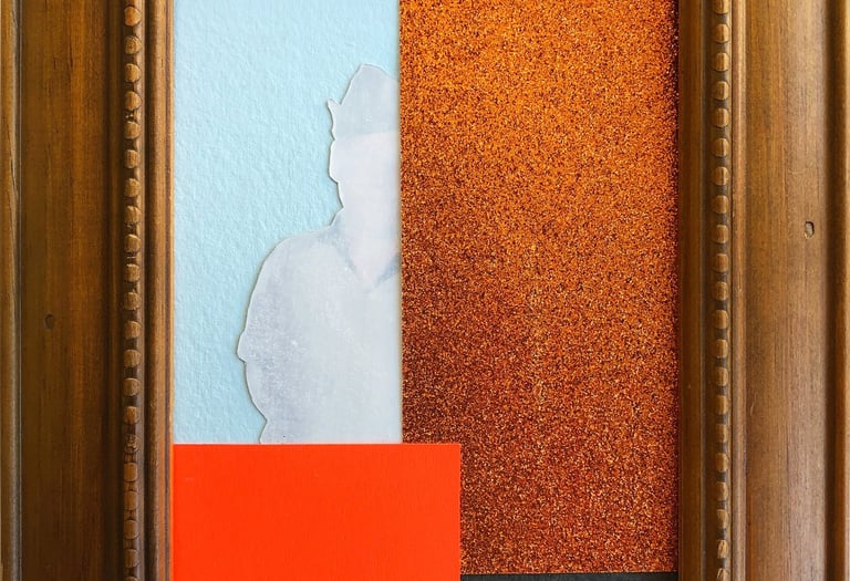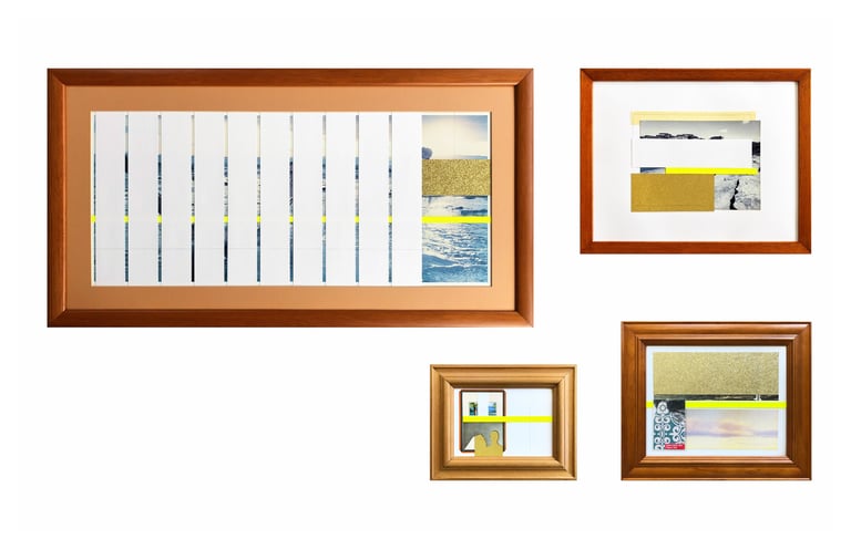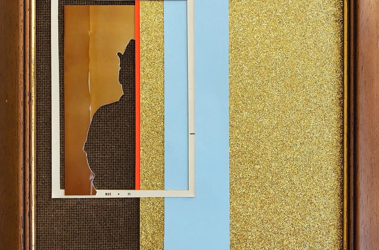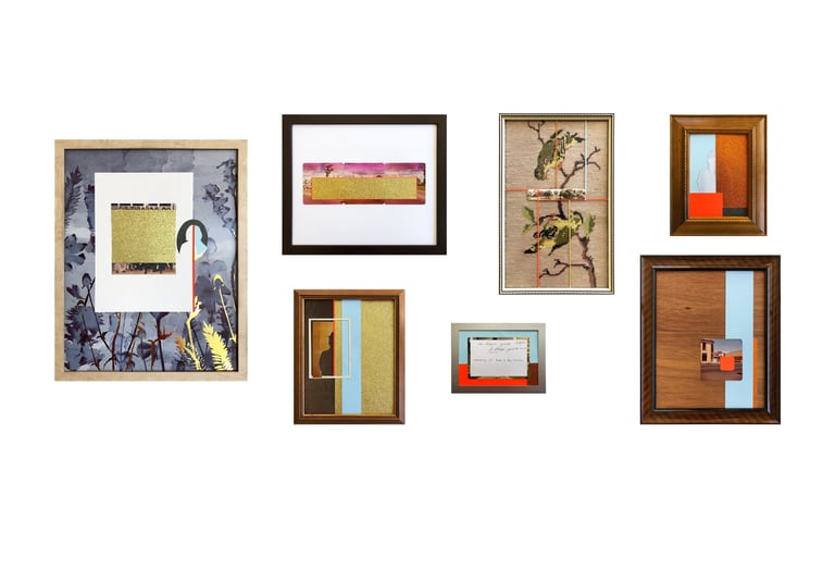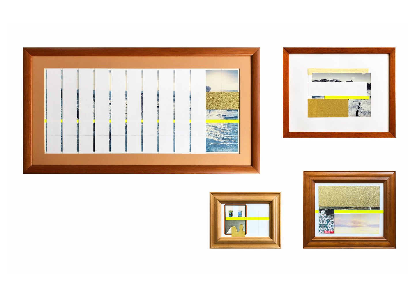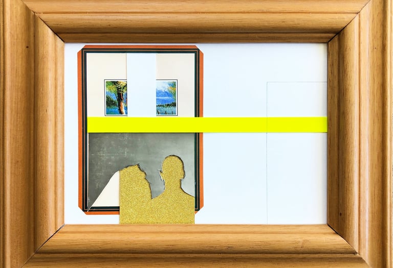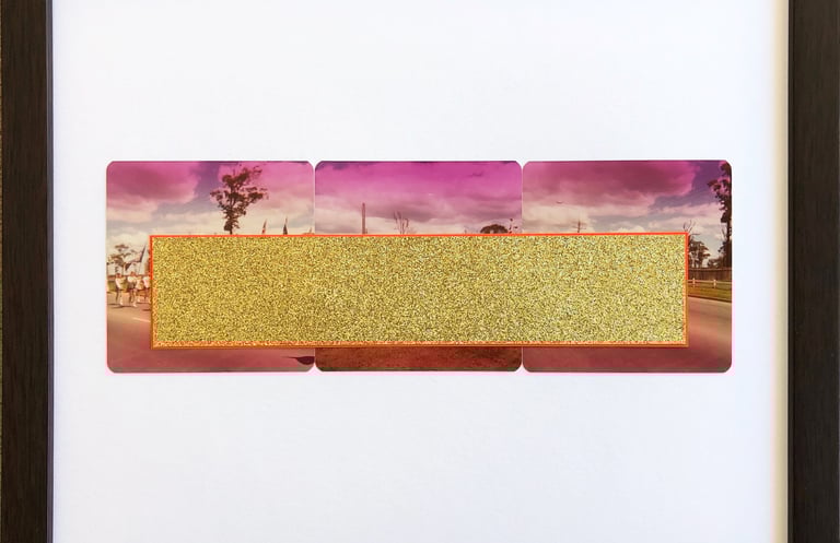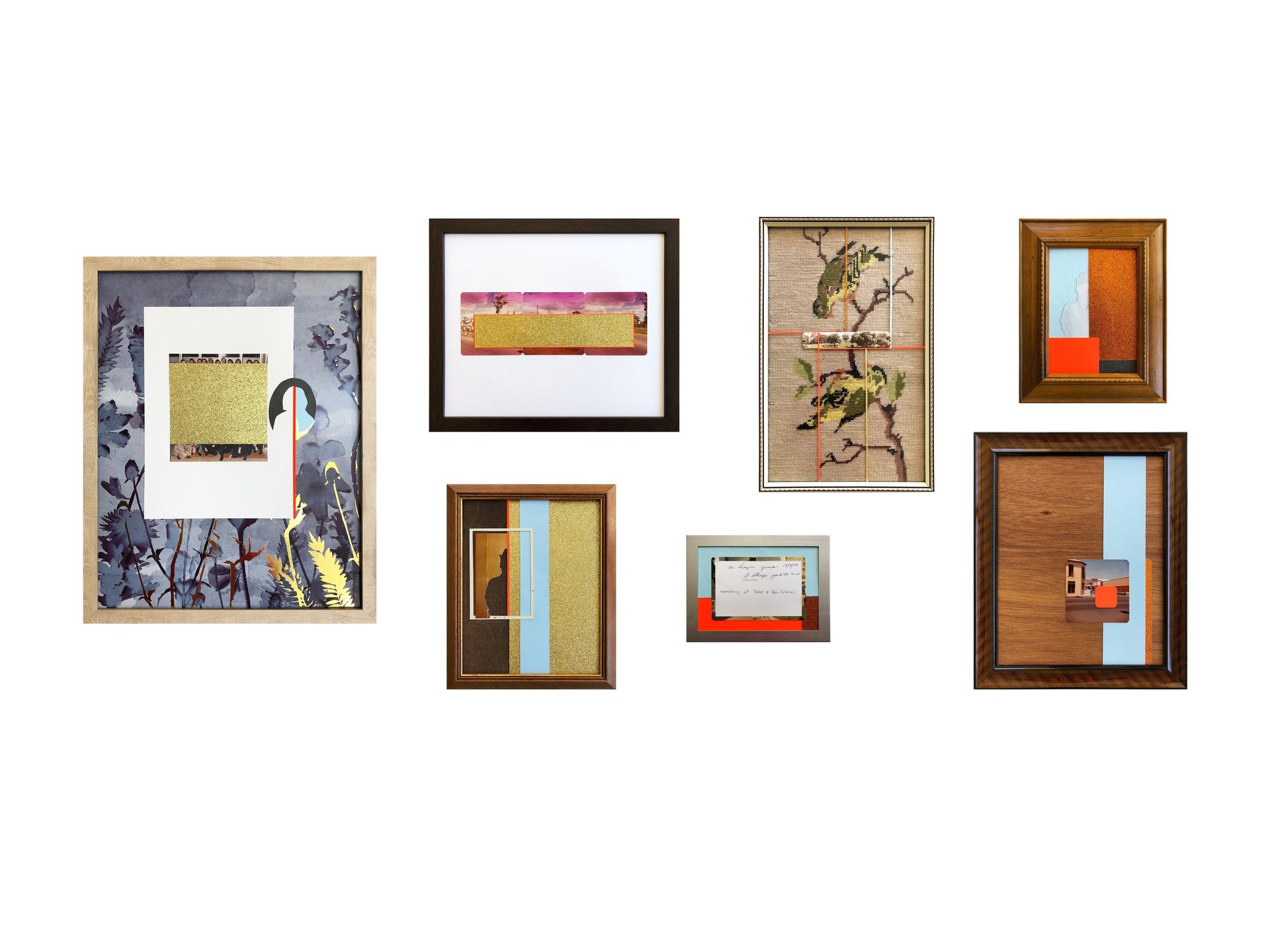 Campbelltown, NSW, Australia. - Framed Memories Installation - seven pieces Variable dimensions 2019 | Found photography, ephemera, hand-cut paper, glass, acrylic paint, wooden.