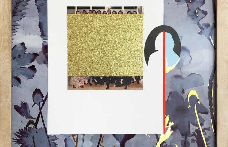 Blacktown, NSW, Australia. Framed Memories Installation - four pieces Variable dimensions 2019 | Found photography, ephemera, hand-cut paper, glass, acrylic paint, wooden.