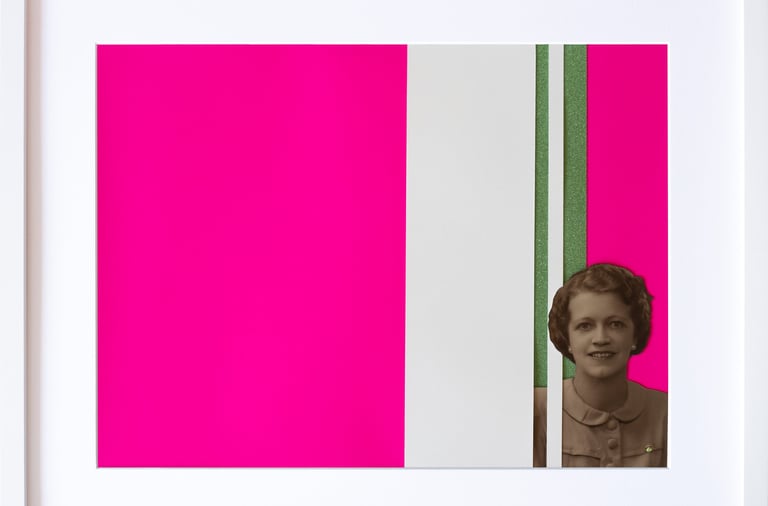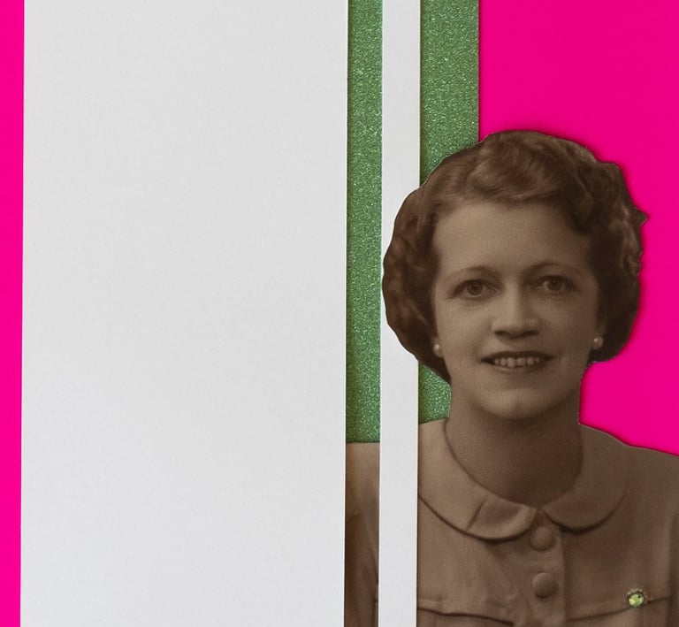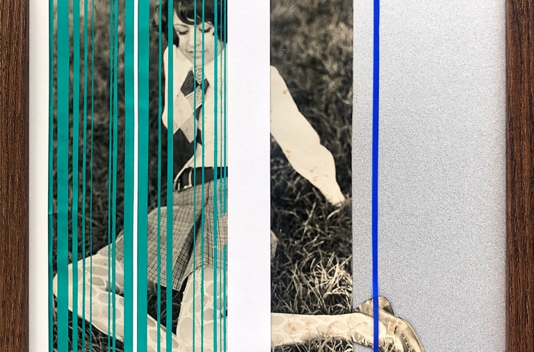 These discarded photographs—once intimate tokens of personal significance—are reimagined through processes of cutting, embellishment, and recomposition. By transforming them into vivid, layered objects, I seek to interrupt their invisibility and reinstate them within a contemporary space of reflection. This act becomes a visual gesture of remembrance, resisting the quiet disappearance of everyday histories and proposing an alternative archive built through care, color, and transformation.