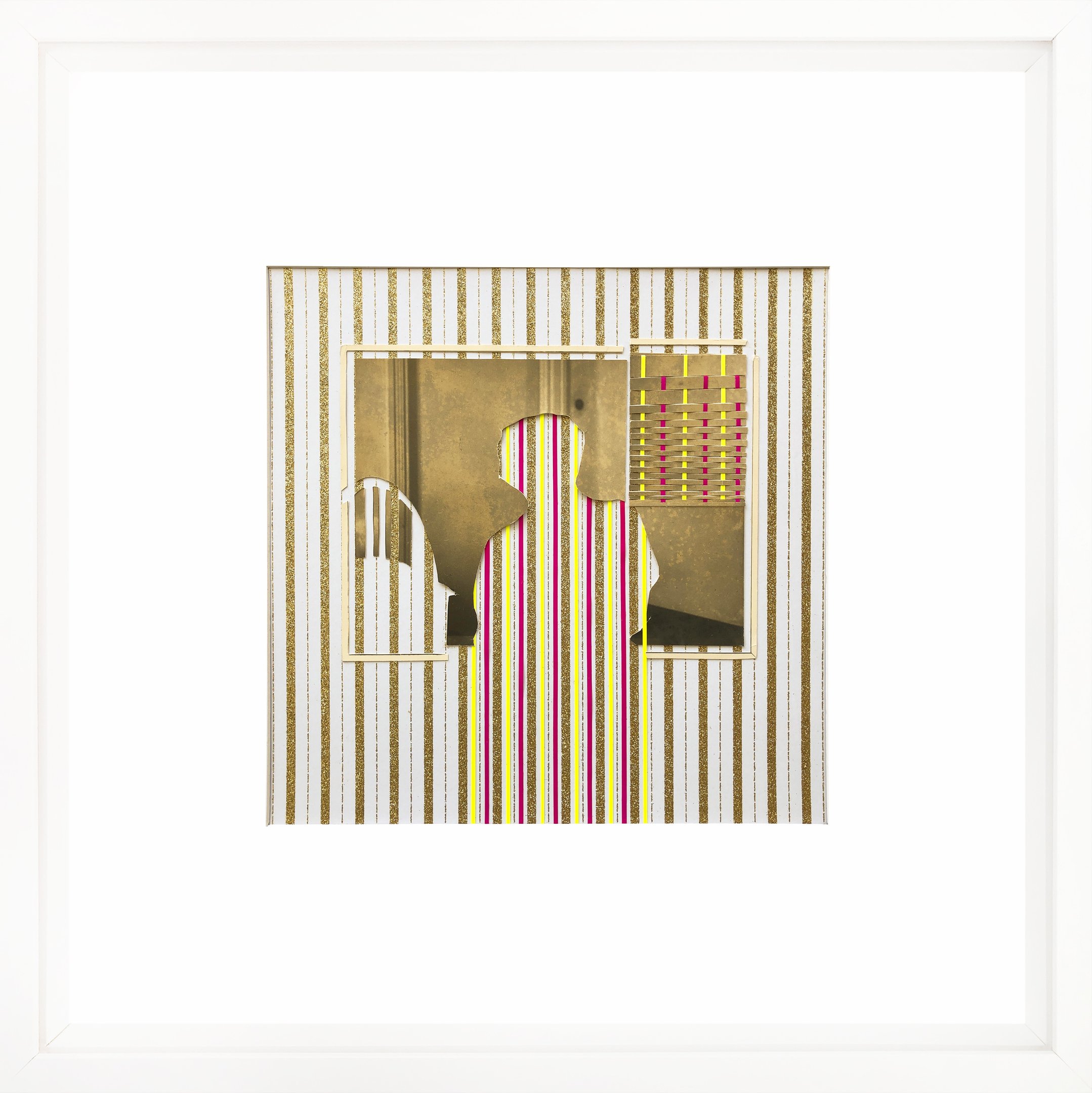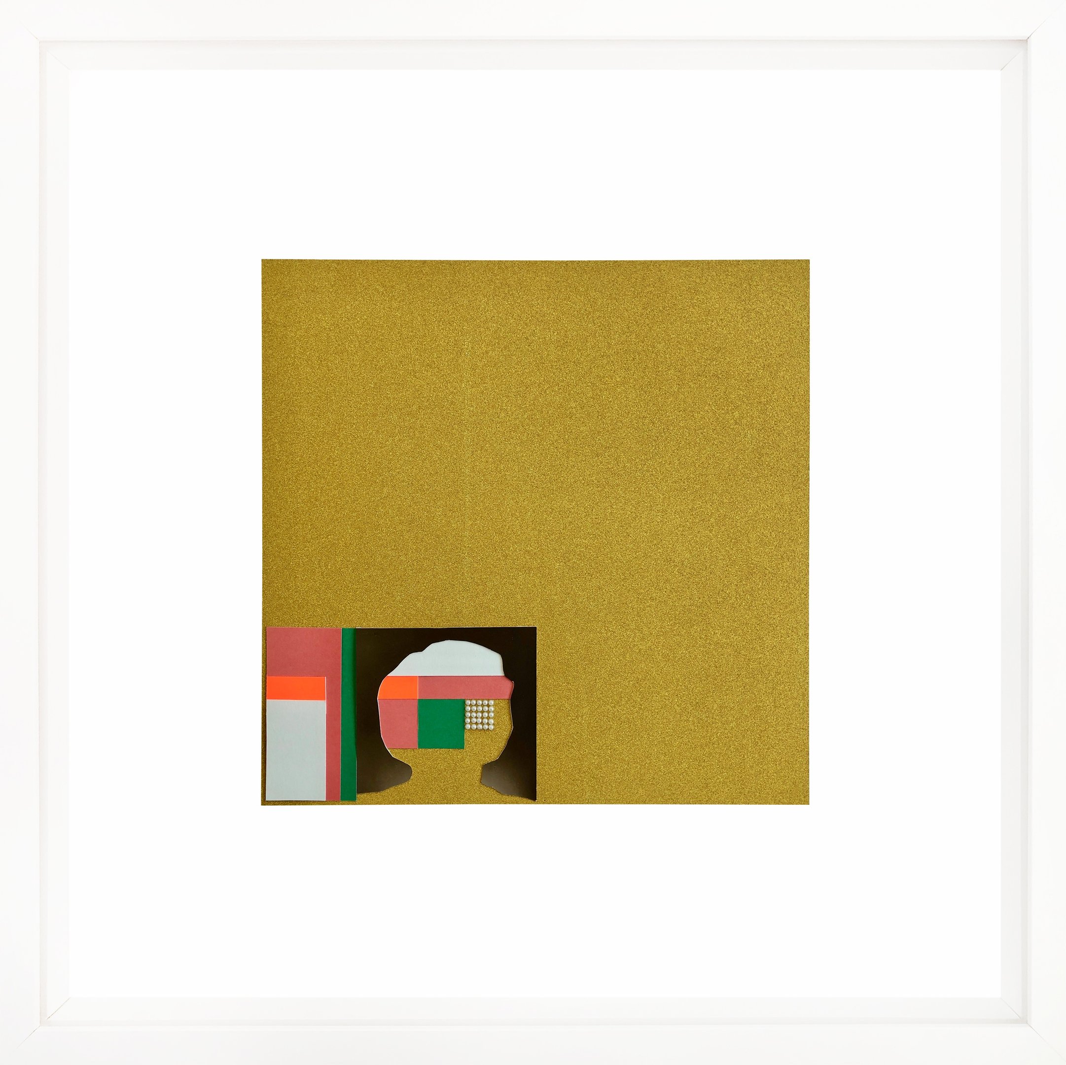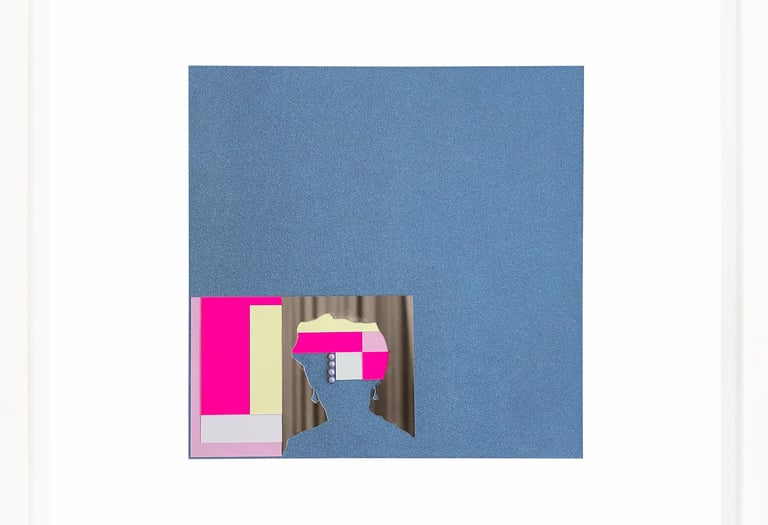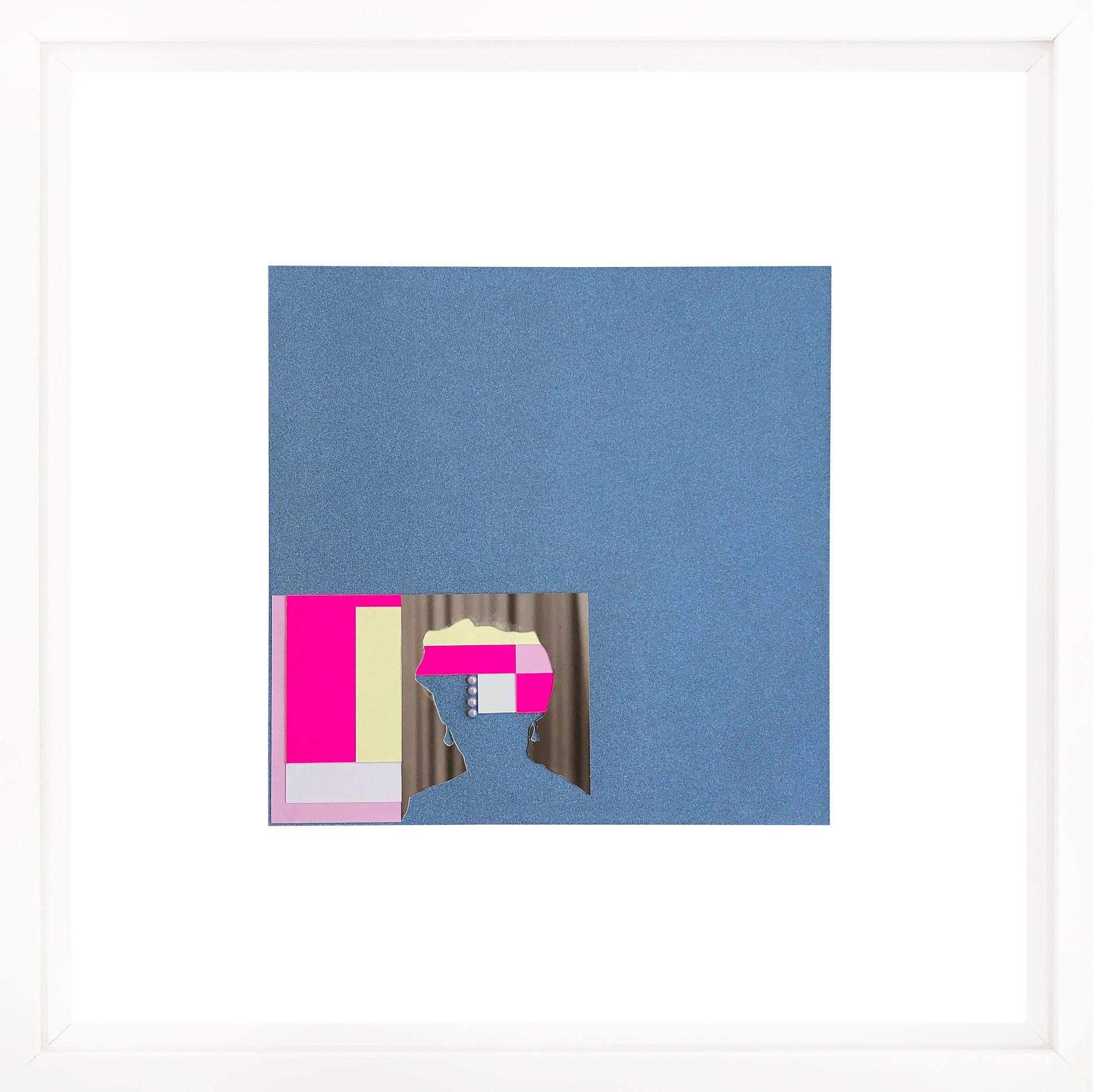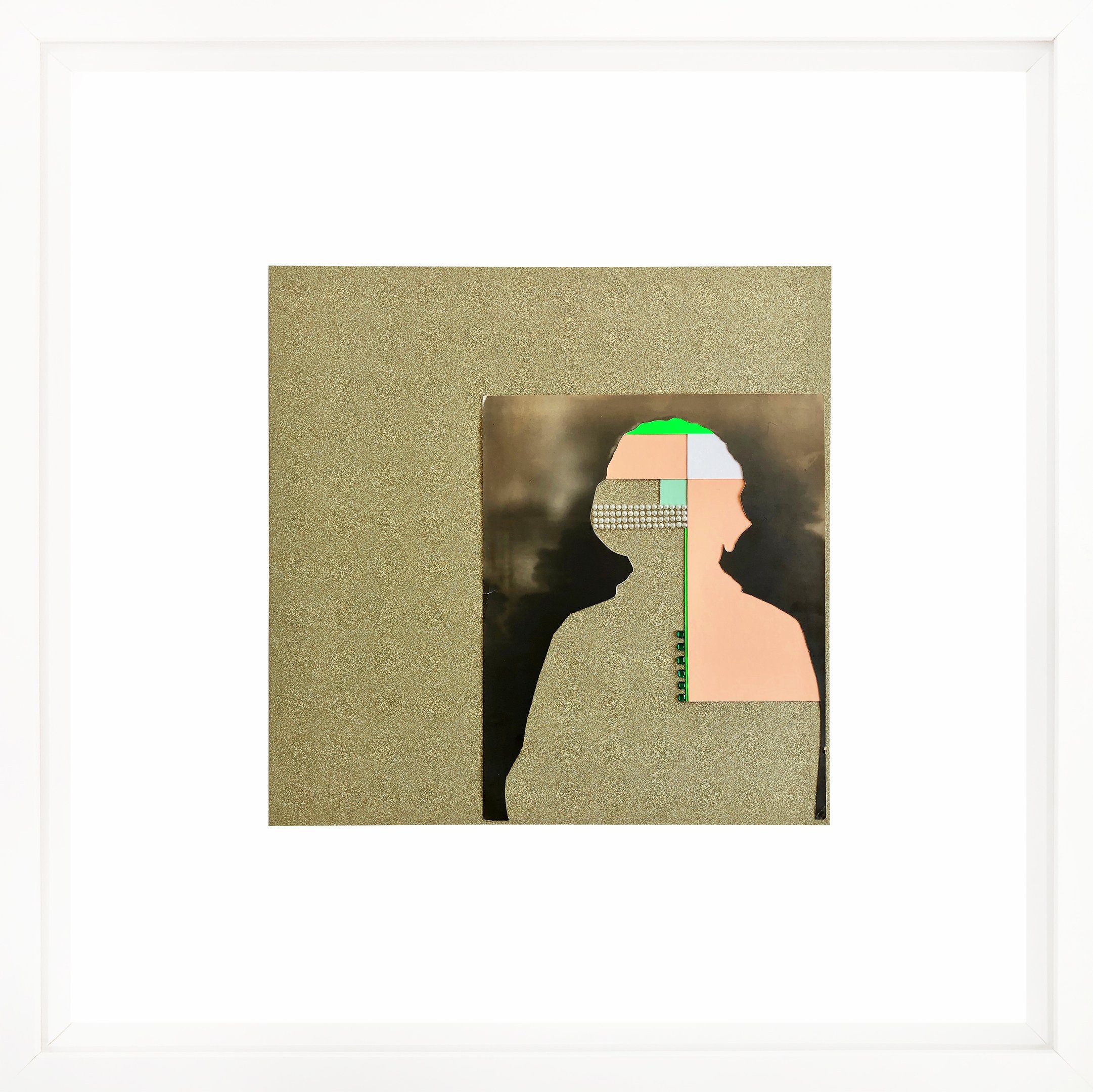 This work repurposes discarded studio portraits, focusing on absence as a space for reinterpretation. Through a deliberate process, I removed the faces, retaining only the silhouettes and staged backdrops. These fragmented figures are then reassembled into geometric compositions using everyday crafting materials in vibrant colors. The resulting works challenge the conventions of portraiture, transforming personal imagery into abstract symbols and raising questions about identity, memory, and the aesthetics of disappearance.