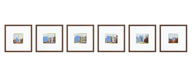 The Photographer Installation - six pieces 20 cm x 20 cm | 7,8 in * 7,8 in each piece 2020 | Found photography, hand-cut paper, enamel paint.