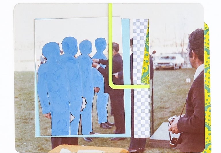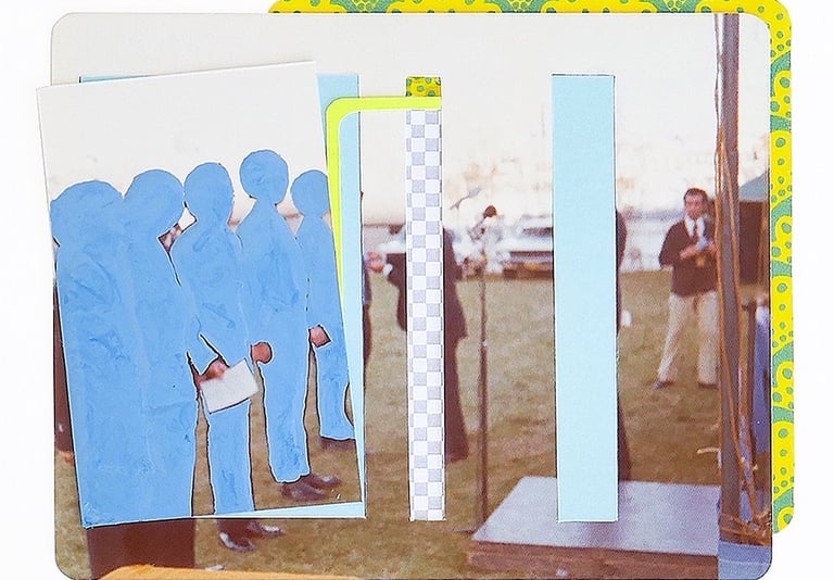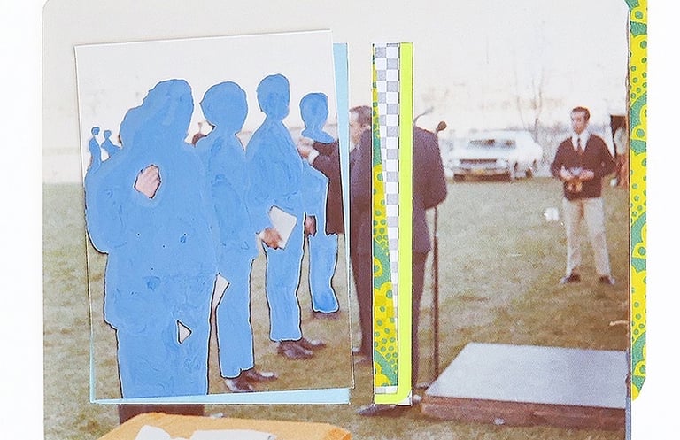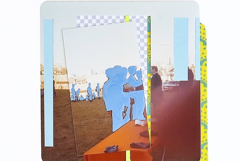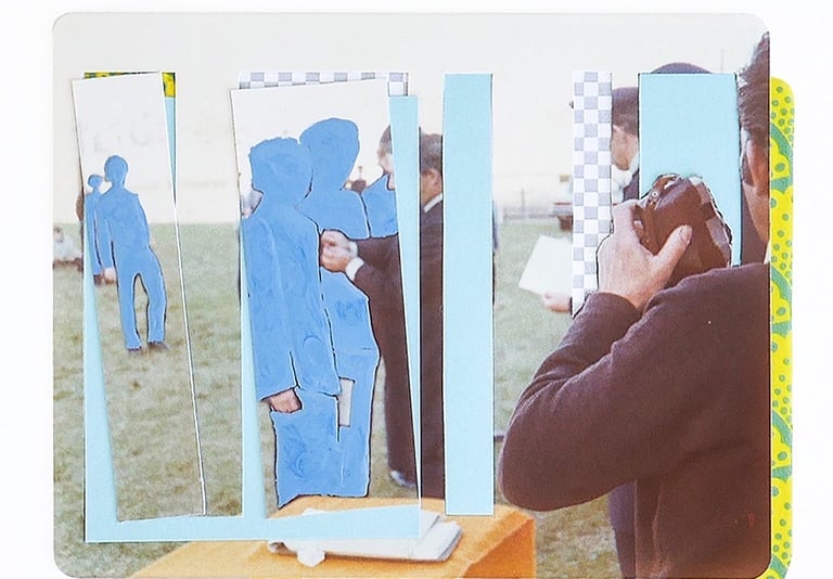 I found a set of photographs in a charity shop documenting an Award Ceremony. What captured my attention was the recurring presence of the photographer within each frame—a figure usually unwanted in the final image. I reconstructed the sequence to obscure the ceremony and foreground this overlooked character, using analogue techniques that echo the aesthetics of digital manipulation. In a technological moment where algorithms are designed to erase distractions and perfect the desired scene, this work resists that impulse. Instead, it embraces the accidental, the peripheral, and the human presence behind the lens, questioning who is meant to be seen—and who is made invisible.